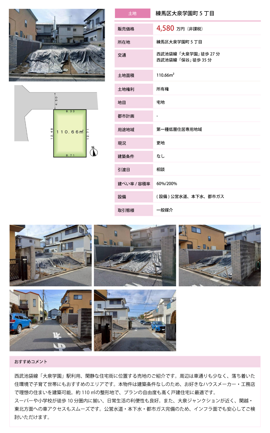 設備は上水道・下水道・都市ガスを完備。現在建築中の物件につき、現地の確認や周辺環境のご案内が可能です。詳細につきましてはお問い合わせください。